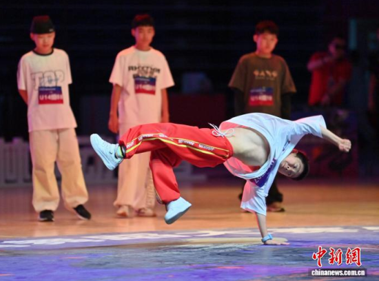 9月6日,吉林長春,舞者在U14組比賽中。當(dāng)天,2025中國·吉林省體育舞蹈公開賽暨街舞國際邀請賽在長春開幕。來自中、韓等國家的千余名選手同臺競技,賽事涵蓋霹靂舞、拉丁舞等多個項目。中新社記者 張瑤 攝