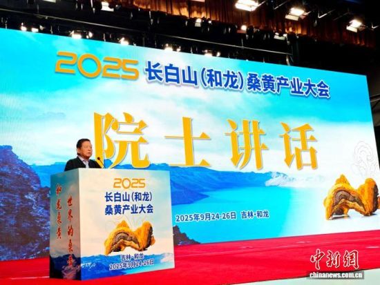 2025長(zhǎng)白山(和龍)桑黃產(chǎn)業(yè)大會(huì)25日在吉林省和龍市開幕,圖為中國(guó)工程院院士李玉正在致辭。